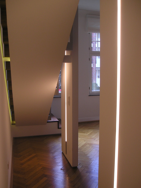 Den Bewohnern des wunderschönen Altbaus in Münster war die alte Treppe immer ein Dorn im Auge. Der neue Aufgang mit integriertem Licht macht den Wohnraum endlich stimmig.