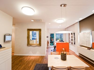 Mit dem für die Kunden maßgeschneiderten Farb- und Innenraumkonzept erhielt „die neue Brille Austermann“ zudem ein modernes und warmes, einfach einladendes Ambiente.