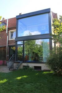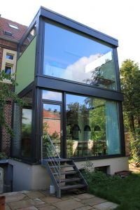 Eine Sanierung nach Maß: Das wunderschöne alte Mehrfamilienhaus sollte zum neuen Lebensraum für eine 4-köpfige Familie werden. Also verschmolzen wir Erdgeschoss und erstes Obergeschoss zu einem zusammenhängenden Wohnraum – mit einer geschwungenen Stahltreppe, die zugleich einen reizvollen Blickfang bildet. Der moderne Glasanbau erweitert die Wohnfläche und die großen Fensterfronten lassen Unmengen von Licht in die Geschosse fließen.